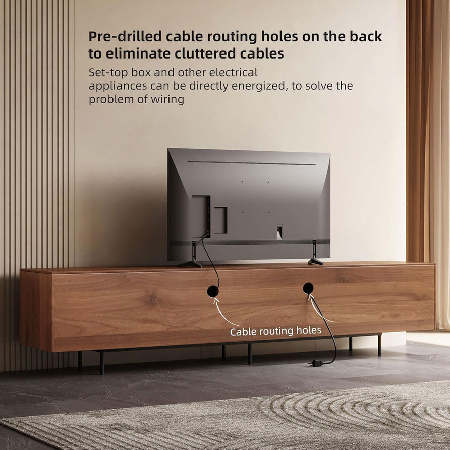 - 【Organized Cable Management】: Featuring well-designed cable management cutouts, this TV stand helps you keep wires hidden and your entertainment area neat and tidy, avoiding unsightly cable clutter. Enjoy a clean, streamlined look in your living space.